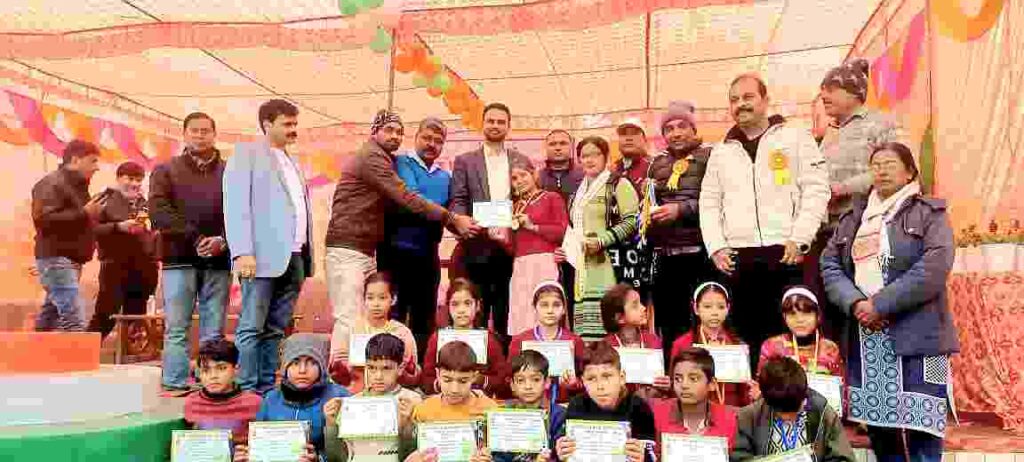 рд╕рдорд╕реНрдд рд╡рд┐рдЬрдпреА рдкреНрд░рддрд┐рднрд╛рдЧрд┐рдпреЛрдВ рдХреЛ рдЕрддрд┐рдерд┐рдпреЛрдВ рджреНрд╡рд╛рд░рд╛ рдореЗрдбрд▓ рдПрд╡рдВ рдкреНрд░рдорд╛рдг рдкрддреНрд░ рджреЗрдХрд░ рд╕рдореНрдорд╛рдирд┐рдд рдХрд┐рдпрд╛ рдЧрдпрд╛ред рд╕рд╛рде рд╣реА рдкреНрд░рддрд┐рдпреЛрдЧрд┐рддрд╛ рдХреЗ рд╕рдлрд▓ рдЖрдпреЛрдЬрди рдореЗрдВ рд╕рд╣рдпреЛрдЧ рджреЗрдиреЗ рд╡рд╛рд▓реЗ рд╢рд┐рдХреНрд╖рдХреЛрдВ рдХреЛ рдкреНрд░рд╢рд╕реНрддрд┐ рдкрддреНрд░ рдПрд╡рдВ рд╢реАрд▓реНрдб рджреЗрдХрд░ рд╕рдореНрдорд╛рдирд┐рдд рдХрд┐рдпрд╛ рдЧрдпрд╛ред